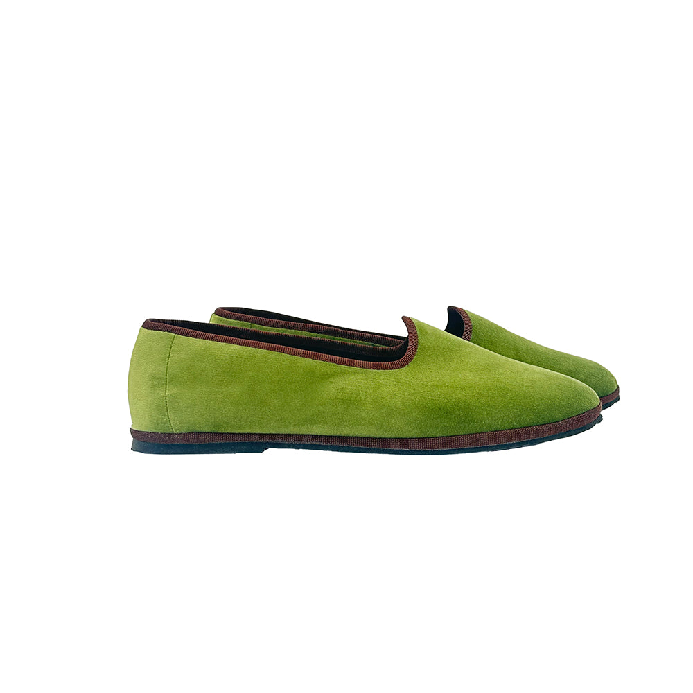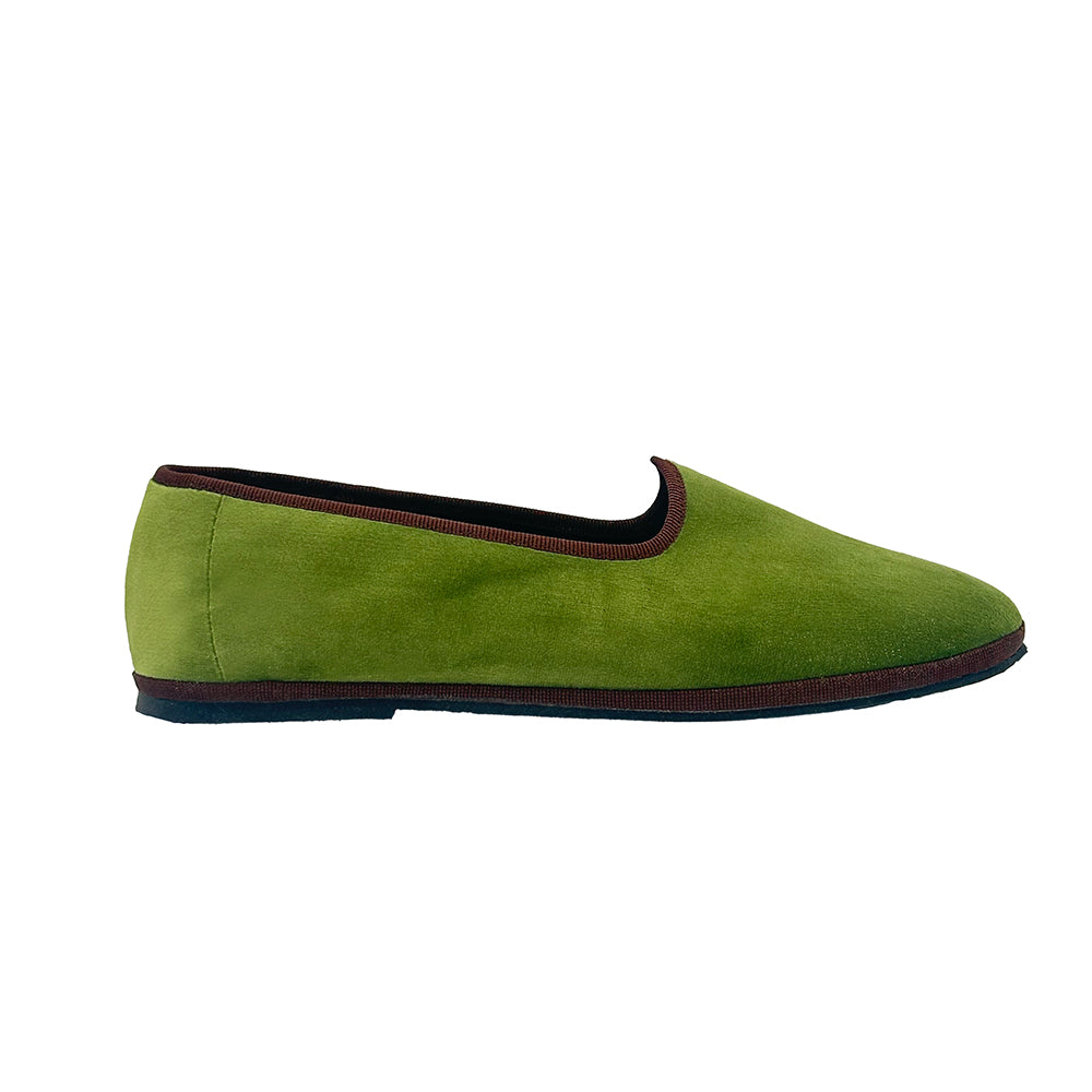 Our two-tone take on the classic Friulane. These velvet ballet flats are made in Friuli, Northern Italy, using a soft cotton velvet upper and a flexible slip-on construction.